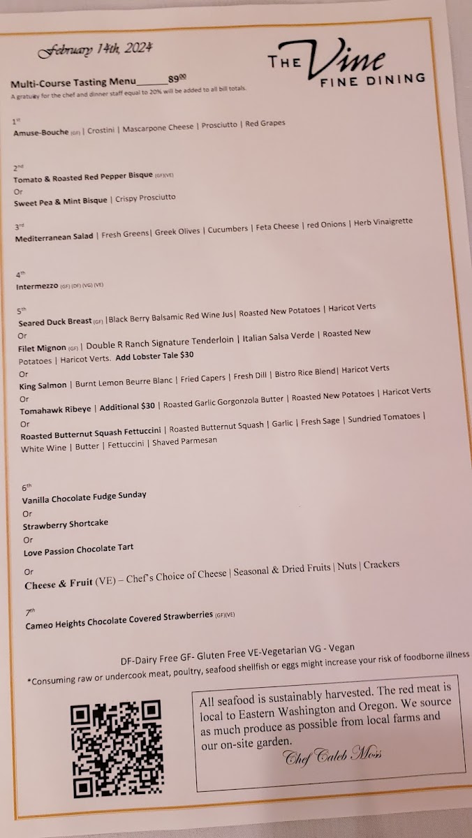 From a reviewer’s perspective, the menu at The Vine Fine Dining is an elegant showcase of refined flavors that elevate classic ingredients into memorable courses. Beginning with the comforting warmth of Roasted Broccoli & Spinach Bisque and the delicately textured Spinach Beet Salad, the appetizers set a sophisticated tone that balances freshness with depth. The seafood selection shines with the vibrant Sesame Seeds Ahi Tuna, a dish that delivers both visual appeal and bold taste. Side dishes like Prosciutto Wrap Green Beans provide a savory counterpoint that complements the menu’s rich proteins. At the heart of the experience is the beautifully prepared Seared SRF Beef Tenderloin, a standout entrée that highlights the kitchen’s mastery of premium meats. Although specific prices weren’t listed in the provided information, each dish feels thoughtfully composed to offer excellent value within the restaurant’s upscale dining context, making the menu both diverse and cohesive for an indulgent night out.